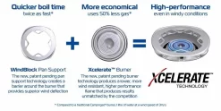 - WindBlock Pan Support: Patented support gives superior wind deflection to protect the flame.