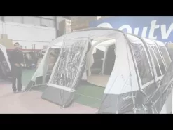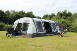 The Airedale 7.0SE by Outdoor Revolution, with superb living space, large sleeping quarters, and a front-enclosed awning. The perfect family shelter, with an inflatable design, a Frame Relief system, and a lifetime guarantee on the beams.