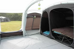 | Features | Rear bedroom vortex ventilation system Sewn-in groundsheet Left Sided Double annexe with side door. Right Sided Canopy Door with Fibreglass Pole Tinted PVC windows, with anti-glare Fully zip-around side doors with mesh panels. Fully zip-around front inner door with mesh. Maple leaf design, zip-up curtains. 5 Person Inner with with zipped divider. Clip-in points for optional two person inner tent. Fully taped and waterproof seams throughout the tent. Compatible with NEW front extension – purchased separately or with a bundle deal. Reflective guylines with adjusters. Cable access point into the main bedroom Extra deep 240cm bedrooms. Darkened twilight bedrooms, with zipped dividers. Phoenix Mesh Ventilation on the doors. Lumi-link compatible Includes pump, peg set, repair kit and storm straps. |
