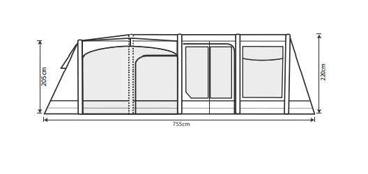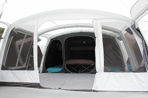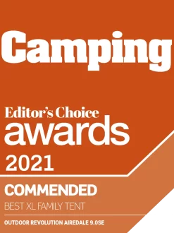 The Airedale 9.0DSE by Outdoor Revolution offers a superb, versatile family shelter, which has additional inner pods added to the tent, to sleep up to 11 – 13 people. The Airedale 9.0se is based on the highly popular 7.0SE, but has an annex on either side of the canvas, to create dual annexes and ample living, storage, and sleeping space. The Airedale has three entrances, two of which have full Phoenix mesh panels to reduce the amount of condensation experienced whilst camping in wetter conditions or more humid conditions.