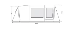 Featuring a three-zone design, which has a large front porch, and a living space featuring a fully sewn-in groundsheet throughout. The design offers great flexibility and storage to the camper, as it has versatile living and sleeping space. Additionally, the sleeping space has darkened, twilight fabrics which help to reduce early morning light in the sleeping quarters. A great package, which really offers suberb value-for-money.