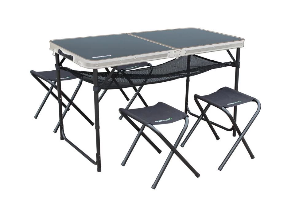 The Outdoor Revolution Table and Stool set is perfect for picnics and somewhere to sit and eat whilst in the great outdoors. Manufactured from aluminium, featuring a table which is heat-resistant and weatherproof, which also makes it an ideal surface for cooking on. The stools can be neatly folded and placed under the table when not in use. The stools are manufactured with very strong legs and feature a double-stitched PVC cover.