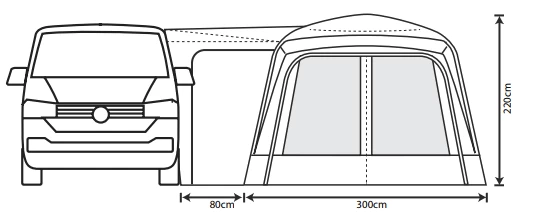 | Recommended Use | Perfect for low vans, between 180 – 220cm tall, such as the VW style vans – the ideal touring awning, with an inflatable design. |