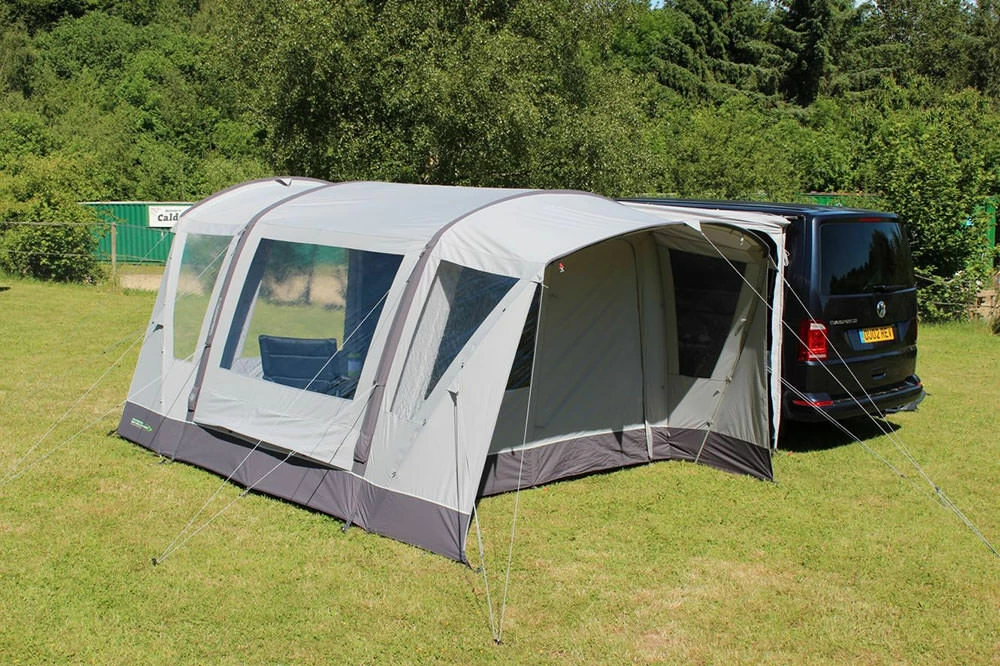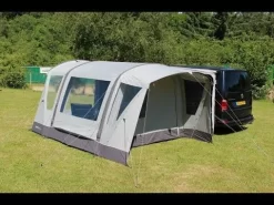 It has twin Kador piping, with 4mm and 6mm Kador threads, which are ideal for all types of rails, such as Fiamma (4mm) or Thule awnings. Further to this, it has a hybrid structure, which has both an Oxygen Airframe and fibreglass poles on the opposing porch doors. This makes it both easy to pitch, reliable and lighter in weight, as the hybrid design aids the weight of the tent.