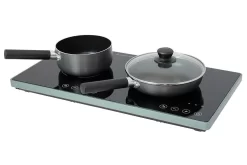 The Double Induction Hob is a really functional and safe way to cook on the campsite, there are no flames so it is a really great alternative to the traditional gas-burning stove. Completely digital, and temperature-controlled with safety features to stop it from overheating, and even a timer.