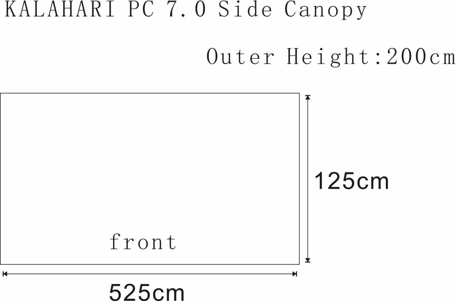 The stunning side veranda, the Outdoor Revolution Kalahari Side Canopy is a steel poled side porch, designed to fit over the side door, and offer a superb area to relax and socialise. The canopy fits to the right hand side of the tent, if you were to stand in front and look at it face on. The side canopy will only fit to this side due to the placement of the side door.