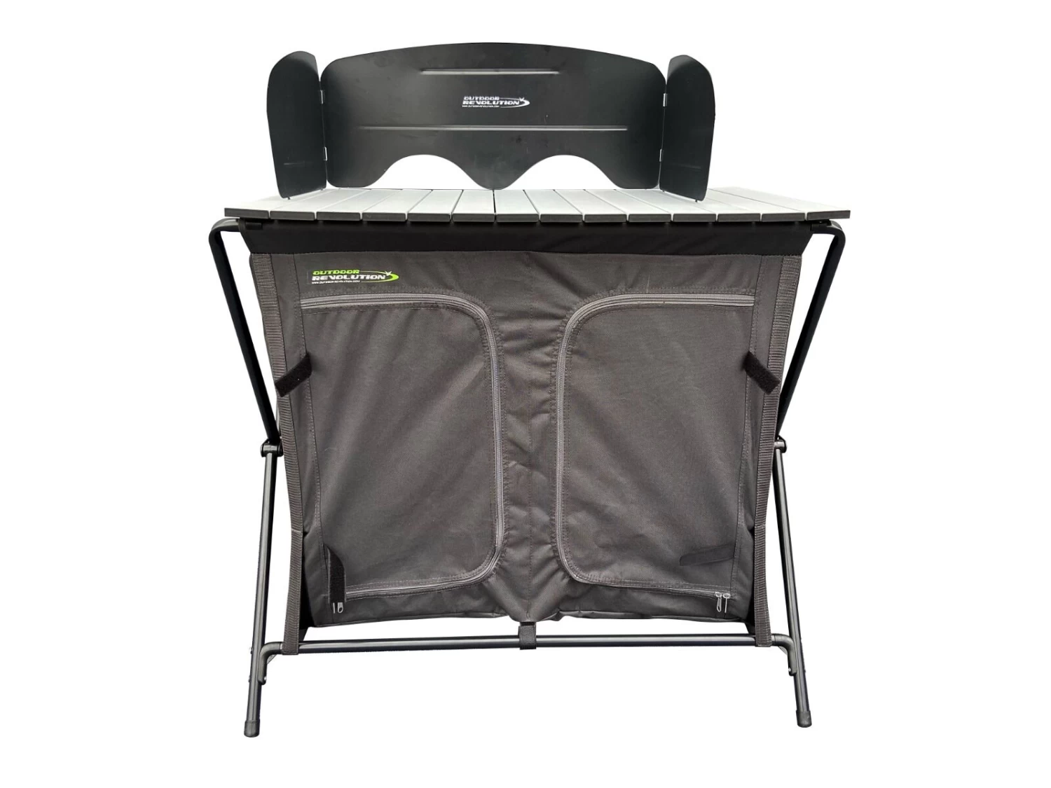 The perfect camp kitchen, the Outdoor Revolution Monza serves many purposes, firstly it is a useful storage larder, and secondly, it is the perfect home for your camping stove. The cooking stand features an steel frame, which is lightweight and durable, and it folds down to a compact size. The removable windshield allows for differing weather conditions, and adds to its versatility. With a quick-erect and set down frame, the Monza will be quick and easy to set up – making it the perfect partner for any campsite kitchen.