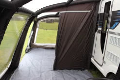 It offers a generous amount of living space and an intergral side extension which is ideal for extra living space or storage, it can be extended further with an optional annex that is perfect for adding a bedroom or a bit of extra space for storage. As well as this it includes mesh panels on both side doors, zip-up curtains throughout, and both front doors can be fully rolled back. Designed with a height range of 235 – 250cm, the awning is versatile to fit most caravans and offers the ability to clip in a 2-person inner tent, making it ideal for adding sleeping space.