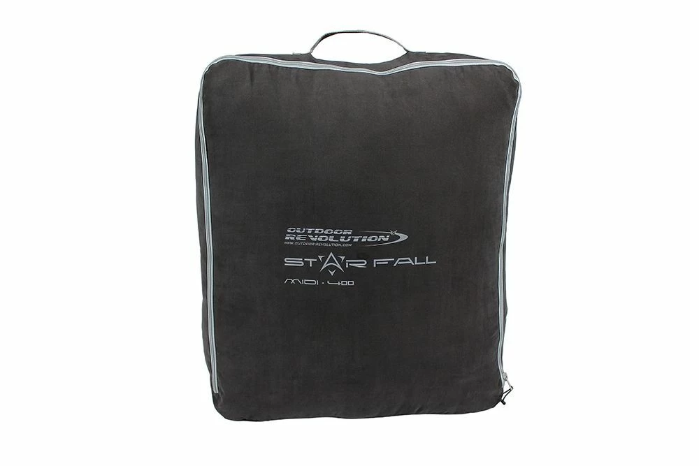 The Starfall Midi 400 is Outdoor Revolutions flagship sleeping bag, with the best comfort, size and warmth in their sleeping range. It is a heavier weight square design with a cowl hood, making it perfect for camping in the UK from early spring right the way through to mid autumn. An additional cotton pillowcase is included that will toggle neatly into the hood for added comfort while on holiday. Manufactured in polyester and nylon, with a comfortable cotton lining to offer the best nights sleep possible. You can easily join 2 bags together thanks to a left hand and right hand side zips making an enormous 2 metre wide Super King-size double.