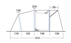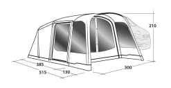 | Features | Designed for Camper Vans with a fitting height from 175-200cm. Vertical front wall with canopy for enhanced interior and exterior living space. Two large side doors with insect-proof mesh screen backing. Spacious living area with large tinted windows for a light-filled interior with curtains for privacy. Double zips allow full front opening, backed by full mesh panel for insect-free ventilation options. Pre-shaped air tubes provide great headroom and interior space. HookTrack System for versatile positioning of lights and items up to 1.5kg. Pre-attached luminous guylines for convenience and fast pitching. Groundsheet for Link Access Zone with built-in draught excluder skirt. Optional dark-fabric inner for sleep or storage. |