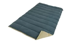 Following on from the award winning sleeping bag is the Outwell Constellation Duvet Lux XL (140cm width), with a 400gsm premium isofill filling, to ensure you are nice and warm in the colder months. A mixture of polyester and nylon (poly-nylon), makes the it very soft on the exterior, whilst the interior has a soft feel 100% cotton liner, the face baffle runs across the top of the bag to keep you warm. You can machine wash the product up to 60 degrees celcius.