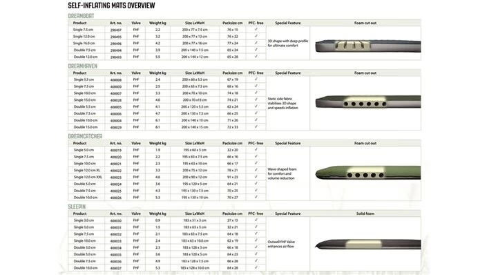 The Outwell Dreamcatcher 12cm XXL Self Inflating Mattress is one of the more popular styles available, with an XXL size for those who wanting maximum comfort and space. The XXL Size 200cm wide by 90cm tall, offering the larger camper the perfect single self-inflating mattress. The NEW FHF valve is an exceptional addition, allowing it to be inflated quickly and easily. Furthermore, the valves clever design will allow air in or out depending on which way the valve is positioned.
