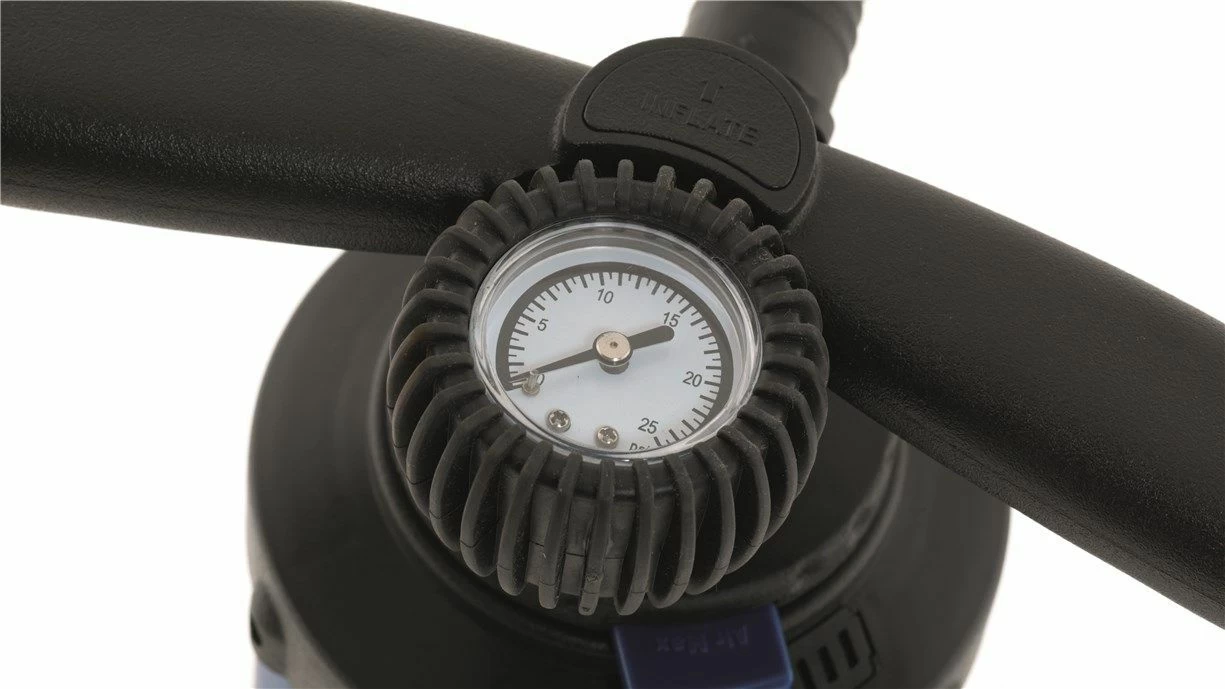 The Outwell Dual Action Tent pump, thrice as effective as a regular pump as it inflates on the up and down flow. Also it is a large volumetric pump, and is much quicker than the one that comes with the tent. Supplied with a pressure gauge, and can go to 25PSI.