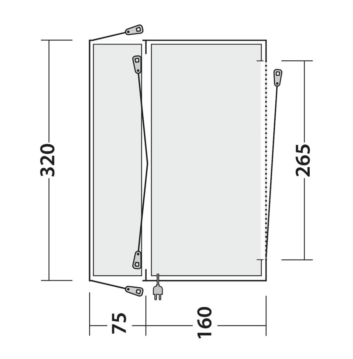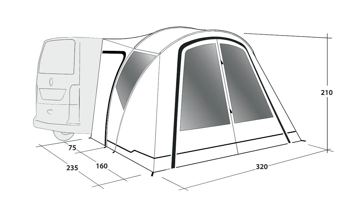 Perfect for touring camper vans, the Lakecrest drive away awning provides a spacious shelter, with solid aluminium poles. Quick and easy to set up, and set down, and designed to fit low height vehicles between 175 – 200cm.