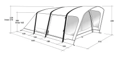 Hybrid Air Structure: The pre-shaped Gothic air beams provide plenty of headroom and maximise the usable interior space. Furthermore, the Springville has a simple inflation system, and bracer beams, which again strengthen the design. The canopy also has a fibreglass pole, making it a hybrid between Air and Pole, which creates a solid, reliable structure. The inflatable tubes are simple and easy to inflate, and it comes with the popular Outwell Cyclone pump, which makes light work of inflating the tent.