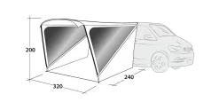 - Lightweight and compact universal shelter for motorhomes, vans and caravans with a lowline height of 175-200cm.