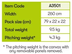 A simple, no-nonsense, affordable porch awning, designed with a 75 Denier polyester fabric, to ensure it is extremely lightweight, and perfect for touring. The weight of the fabric makes it incredibly easy to pull through the awning rail for one person, making it ideal for those who typically set it up on their own. Further to this, the minimal quick-pitch frame system allows it to be erected within 15 minutes, giving far more leisure time.