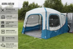 A simple, no-nonsense, affordable porch awning, designed with a 75 Denier polyester fabric, to ensure it is extremely lightweight, and perfect for touring. The weight of the fabric makes it incredibly easy to pull through the awning rail for one person, making it ideal for those who typically set it up on their own. Further to this, the minimal quick-pitch frame system allows it to be erected within 15 minutes, giving far more leisure time.