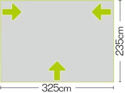 Full mesh doors aid with ventilation and air flow, the front also rolls up this creates a large, airy opened space which is great for sitting out when the weather is brighter, you can create a larger sheltered outdoor space by purchasing the universal canopy poles, don’t worry about excess damage from the sun the fabric is UV coated which offers you and the awning itself greater protection from the UV rays with an amazing U.P.F rating of 50+.