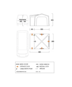 Continued on for the 2022 camping season, the Agora Air in Shadow Grey, part of the Sentinel Sports collection of camper van awnings, is ideal for any style of VW camper van. It features a 150 denier polyester fabric, with a sewn-in groundsheet. It also features a connecting panel, with a Kador rail for lower vehicles, ideal for sliding into a wind-out awning rail. Easy to pitch, due to the patented, tried and tested Airbeam system, which is perfect for quick pitching for those touring campers.