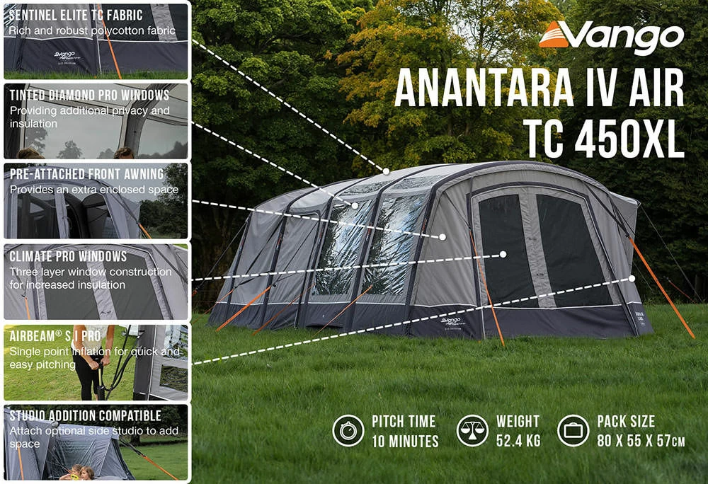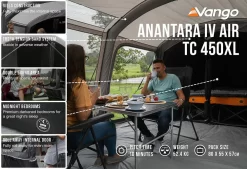 A stunning family tent perfect for smaller families or couples wanting masses of living space, the Vango Anantara IV returns for 2022, in a new size of 450xl, with a polycotton design. Loaded with great features, such as the new Single-Point inflation system, which allows it to be pitched from one valve. Combine this with the additional Turbopump (sold separately), and you can sit and relax whilst it inflates itself. The Anantara is famed for its three-zone design, which offers an abundance of living space, sleeping space and comfort. The design heavily focuses on mesh ventilation, to increase the comfort further, by having multiple mesh panel doors, and mesh panel windows, all of which promote a healthy airflow throughout. Finally, the brilliant Midnight bedrooms help provide a darker sleeping compartment, for a better night’s sleep, and making it easier to get the kids settled for the evening.