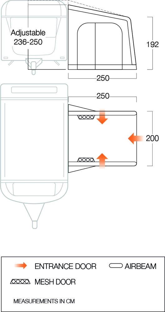 Part of the Balletto Range with a new size introduced, this will be the smallest from Vango at 200cm wide. The Vango Balletto 200 Elements Shield is the perfect porch awning for touring when a little extra space is needed. Use the area as storage or play space for a child or add a table and chairs comfortably for up to 2 people.