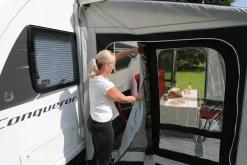 - Side Doors – can be removed and replaced with a tall annexe, which has a pre-attached inner tent, which can sleep two people. Annexe is sold separately, or as part of bundle deals below.