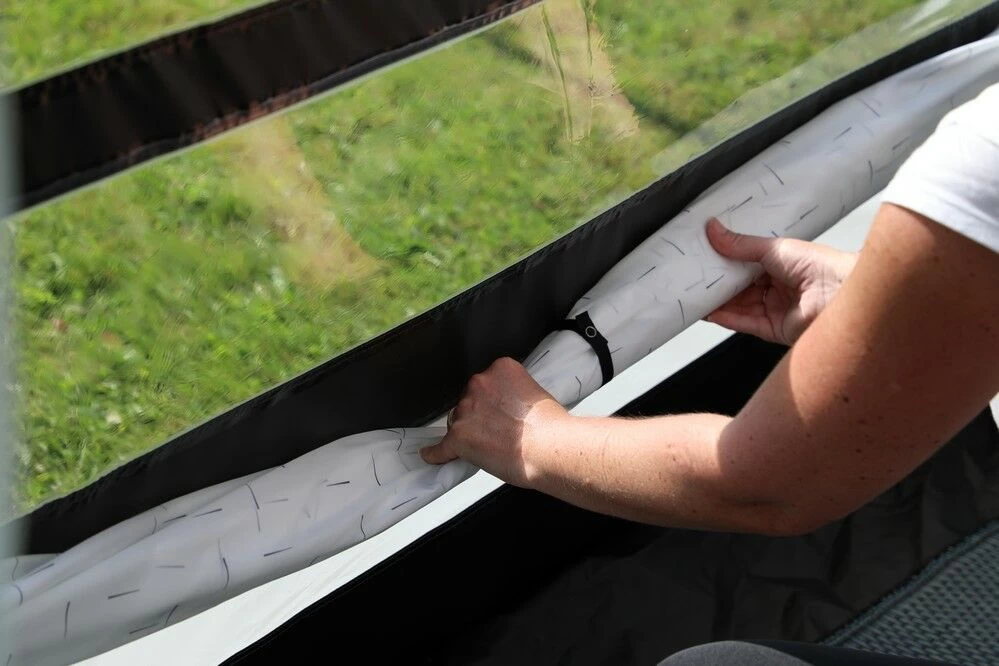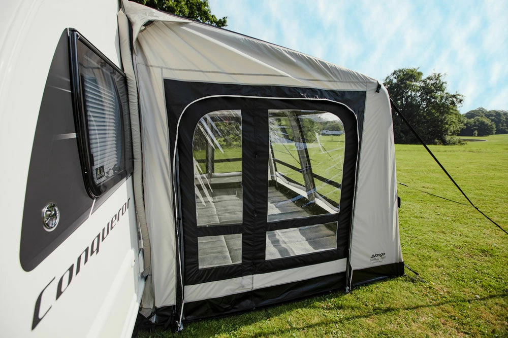The larger in the Elements Shield collection, the Vango Balletto 390 Air is the perfect option for those requiring a lightweight porch awning, which is ideal for shorter-term camping trips, or weekends away. The lightweight 150 denier, makes it lighter in weight, and more portable. Further to this, the Balletto features a 390cm width, which is ideal for fitting onto most caravans, with a Draught Seal system for securing it to the van without the use of steel poles. Further to this, the NEW S.I Pro design makes pitching a simple task, especially if combined with a Turbopump, simply attach the pump in one place, then inflate from one beam, not multiple points.