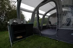 The all-new Vango Galli III Tall awning, redesigned for 2021 to include added features and benefits to the camper. The Galli is sideways sitting and has the connection panel on the side, allowing you to maximise the living space outside of the motorhome or van.