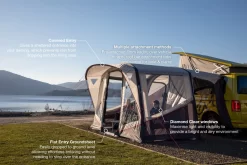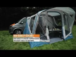 New to the drive away collection, the Vango Tolga VW Low Awning is perfect for the VW camper vans, is stylish, in the Shadow grey colour, to match your VW style vehicle. Designed in a “Low”, it will fit vans with a rail height of 180-195cm. The Tolga is part of the Sentinel Sport collection, which is designed in lightweight, hard-wearing 150 Denier polyester. Perfect for those wanting something more durable than the entry-level fabrics, but without the cumbersome weight of the heavier fabrics such as 420 Denier or polycotton. Further to this, the Tolga utilises Vango’s amazing Airbeam structure, for quick-pitching – perfect for touring.