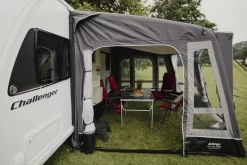- Touring Awning – this is not ideal for residential, or permanent pitching. It is designed for shorter term camping trips, and not to be left on a long-term site.