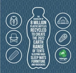 Earth Dura Range – utilises Vango’s popular 70 Denier polyester fabric, which is treated with ColourLok to deter fading, slowing the UV degradation. Further to this, the Earth collection is manufactured with recycled, single-use plastics, woven into polyester to create this large outdoor inflatable structure perfect for the family.