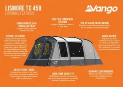 Made with a simple tunnel construction and the use of durable fibreglass poles which create a spacious area with full standing height throughout, and three zones for a more comfortable camping experience. Designed to sleep up to four people, but offering comfortable space for two-three people, the Lismore 450 TC is ideal for couples wanting ample living space.