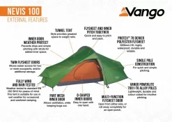 - With a pitching time of just 5 minutes, the Nevis is simple and easy to pitch, providing a tunnel design, which offers a fantastic space-to-weight ratio.