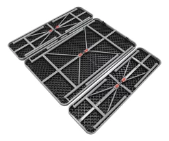 A unique, lightweight camping table and chair set, perfect for meals at the campsite, or in the garden, with space for up to four persons. Packs small when not in use, for greater portability, and easier storage.