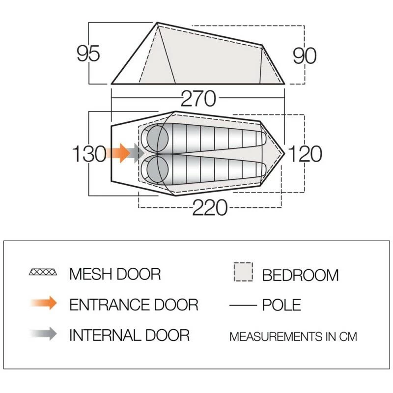 - 70 Denier Polyester Fabric – lightweight, robust fabric ideal for fair-weather camping.
