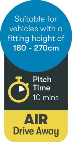 The Hydra 320 Travel Smart Air from Westfield is a medium sized awning in a drive away style. Use as an external shelter for storing items that you do not want inside the caravan such as muddy boots or just use it for the extra floor space, Take in the views around you with the large open panoramic windows, add privacy to this by toggling up the internal blinds.