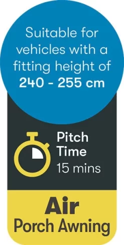 The Westfield Vega 330 is a modern luxury porch awning made with a top quality polycotton fabric but with a cotton like touch, it has a performance coating which is designed to withstand the elements, giving you an area of 330 x 250cm to use as an extra outdoor room, storage or bedroom space.