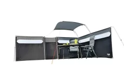 Westfield Windshield Pro Expert edition, lightweight simple design with a patented frame system for ease of use and durability, use freestanding or if available it can slide into your awning channel 140 high by 480 cm in length, 150 denier fabric is quick drying and offers a waterproof HH rating of 4000mm,