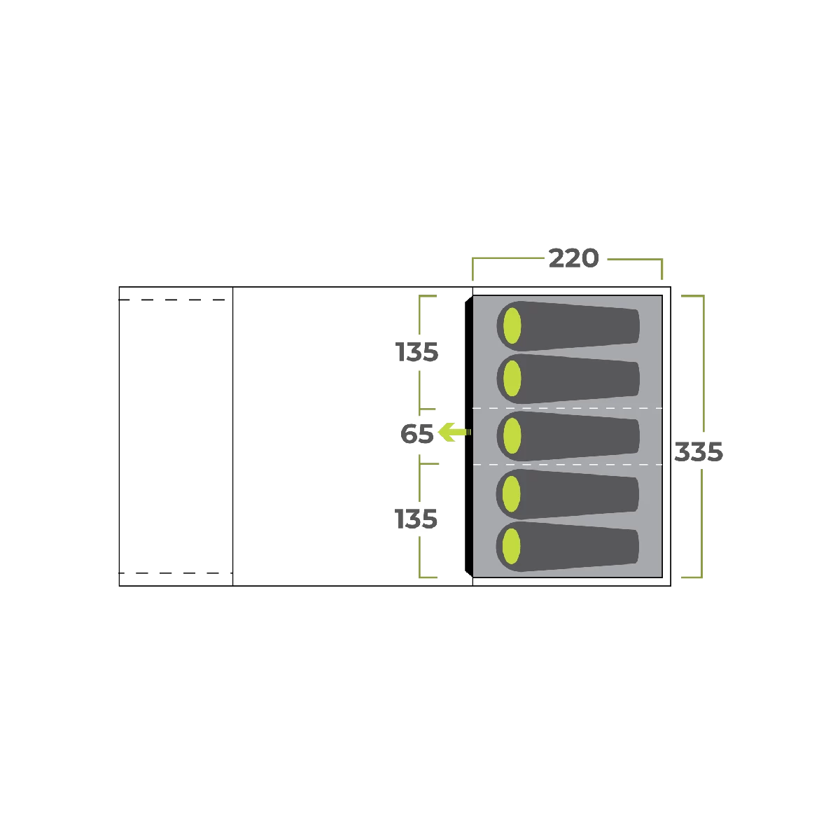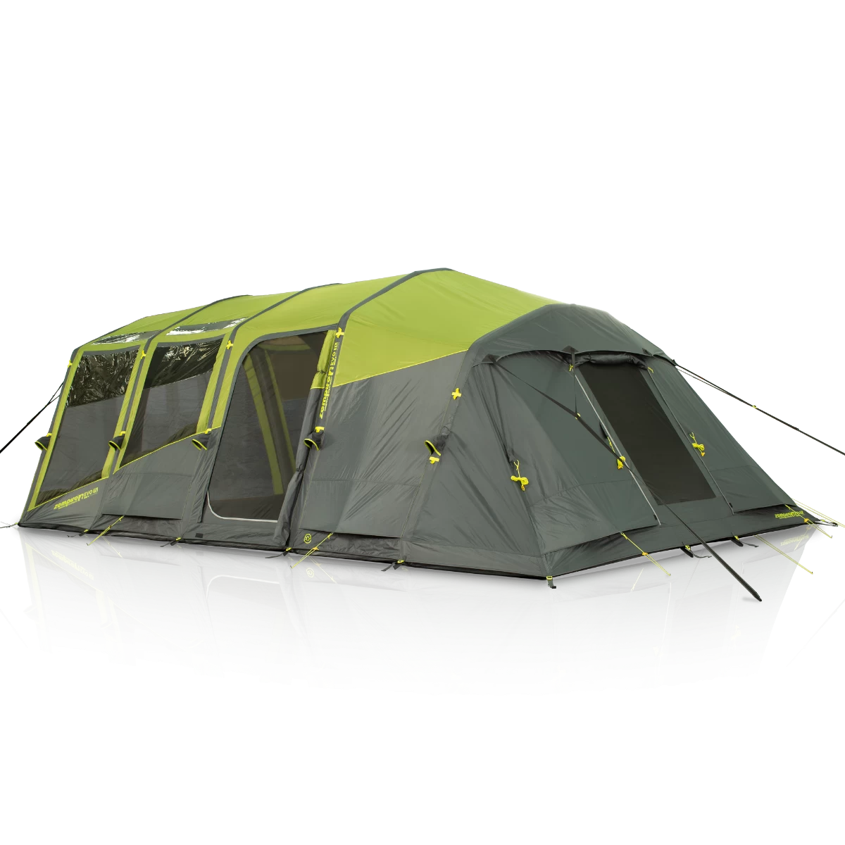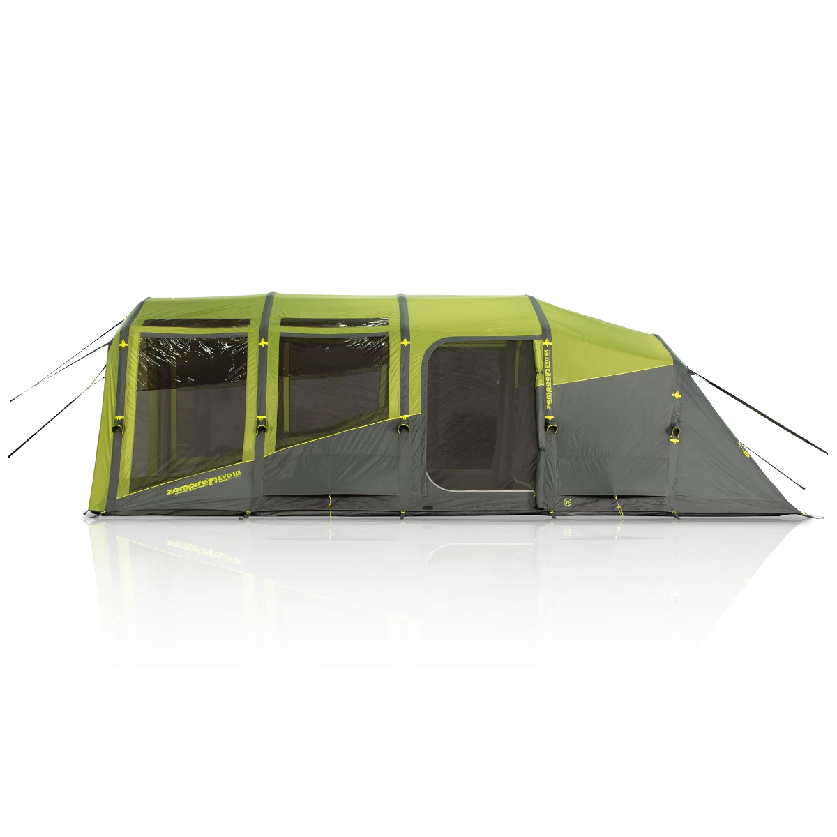 The Zempire Evo TL V2 Tent is a five-berth model with three zones, ample living space and full standing height. Continuing with the SeroLink inflatable design, this connects the air frame directly to the flysheet, helping increase the strength but also reduces weight and bulk. The beams are also pre angled to aid rigidity, strength and living space. Furthermore, the 150-denier polyester fabric is durable, and offers the best weight to quality ratio for a tent of this size, with a high hydrostatic head of 6000mm, a UPF rating of 50 and a fire retardant coating gives you confidence it has been designed with safety in mind.