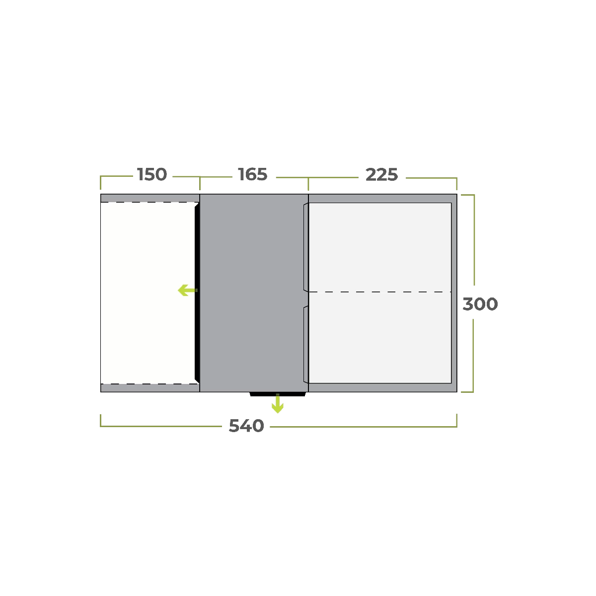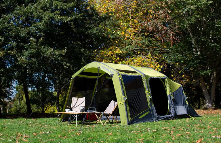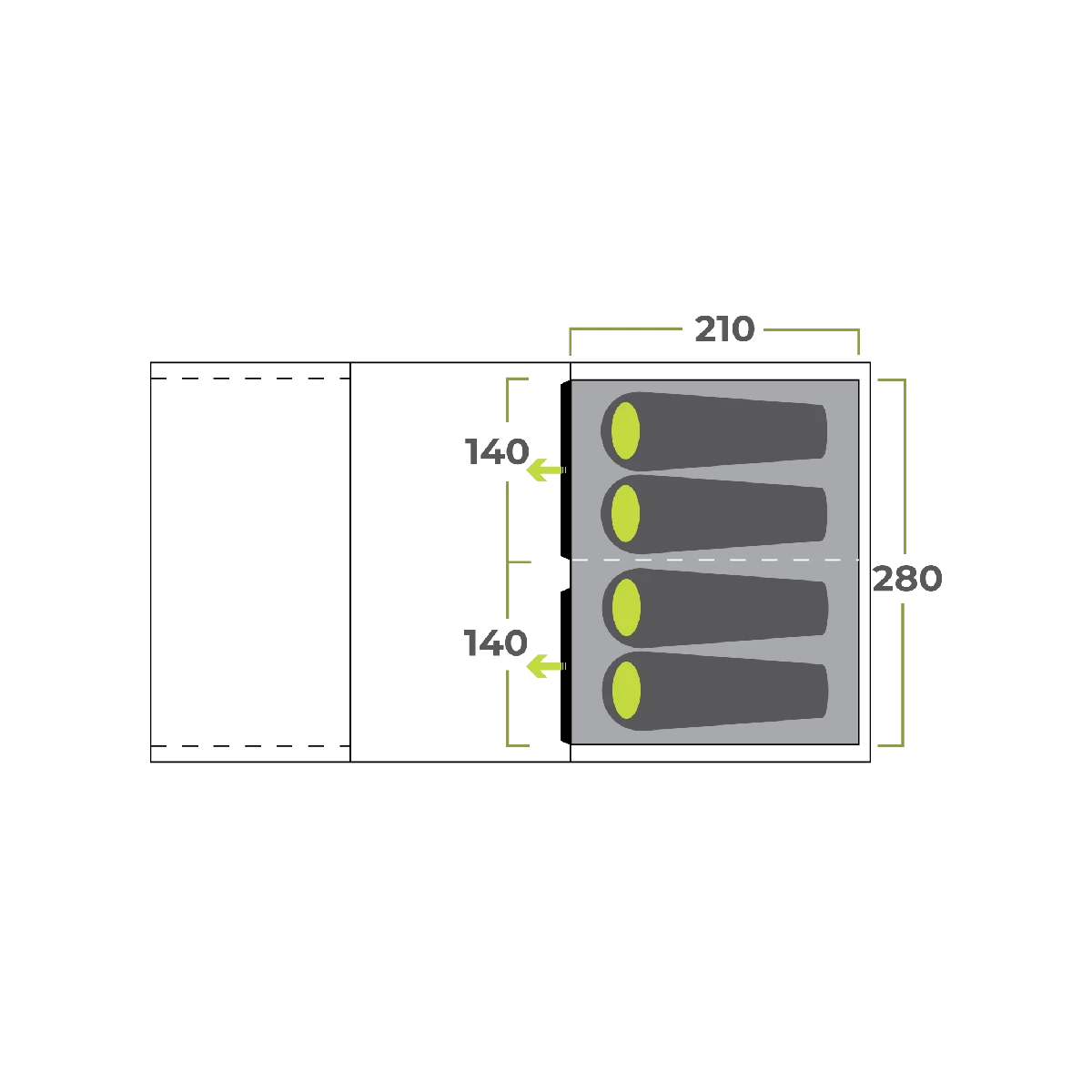 The Zempire Evo TM V2 is a four-berth tent, with three zones: bedroom for 4, full standing height livig space living and awning area. Using SeroLink inflatable design, this connects the air frame directly to the flysheet, helping increase the strength but also reduces weight and bulk. The beams are also pre angled for greater headroom and to aid rigidity, strength and living space. Furthermore, the 150-denier polyester fabric is durable, and offers the best weight to quality ratio for a tent of this size, with a high hydrostatic head of 6000mm, a UPF rating of 50 and a fire retardant coating gives you confidence it has been designed with safety in mind.